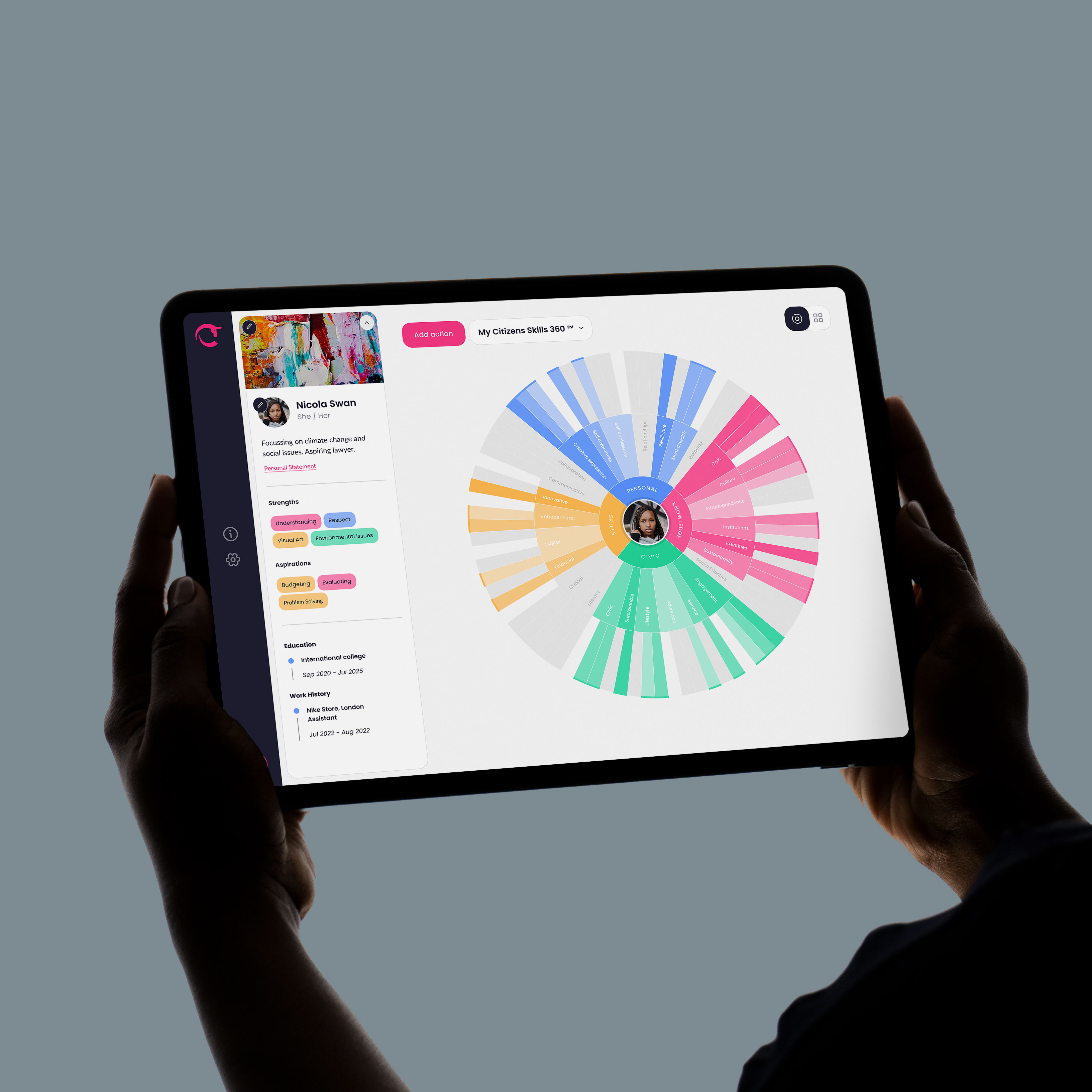 A visual profile for students showcasing their social impact beyond grades and exams